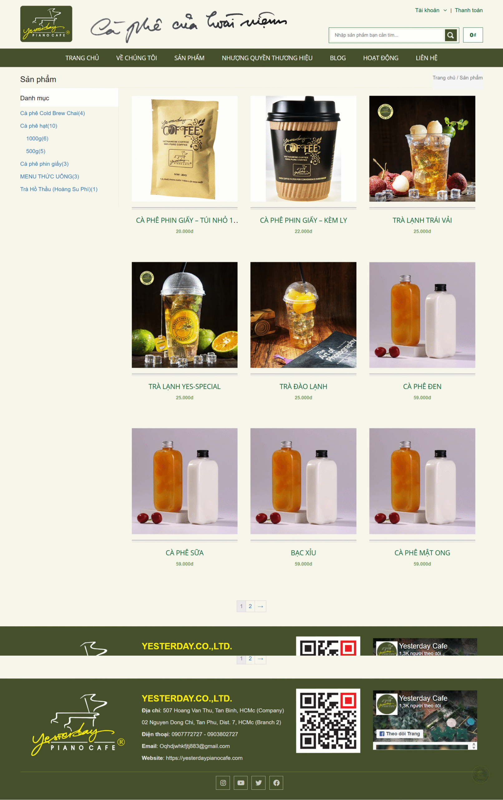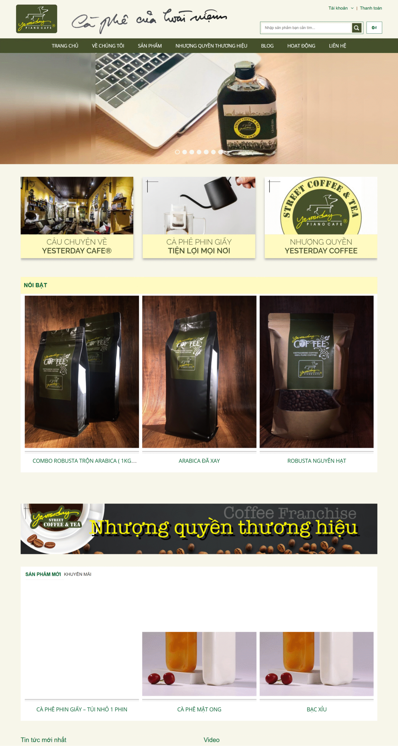- – Sản phẩm: Cà phê đóng gói các loại, mô tả rõ ràng từng sản phẩm, hình ảnh chân thực